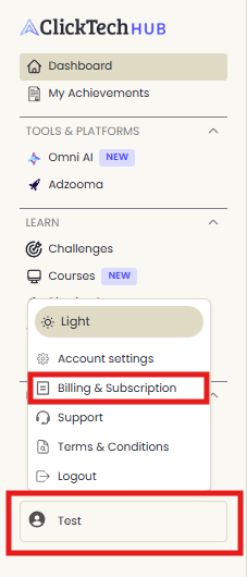 Our users have full access to manage, amend, and cancel their own subscription from the Billing and Subscription section of their ClickTech HUB account