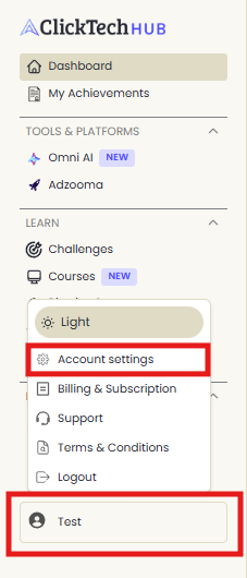 Your ClickTech HUB account name can be updated from the Account Settings section of your account